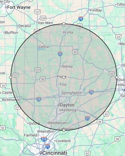 We can come to almost any location within 50 miles of Fletcher, Ohio. (Inside campgrounds will require prior authorization)